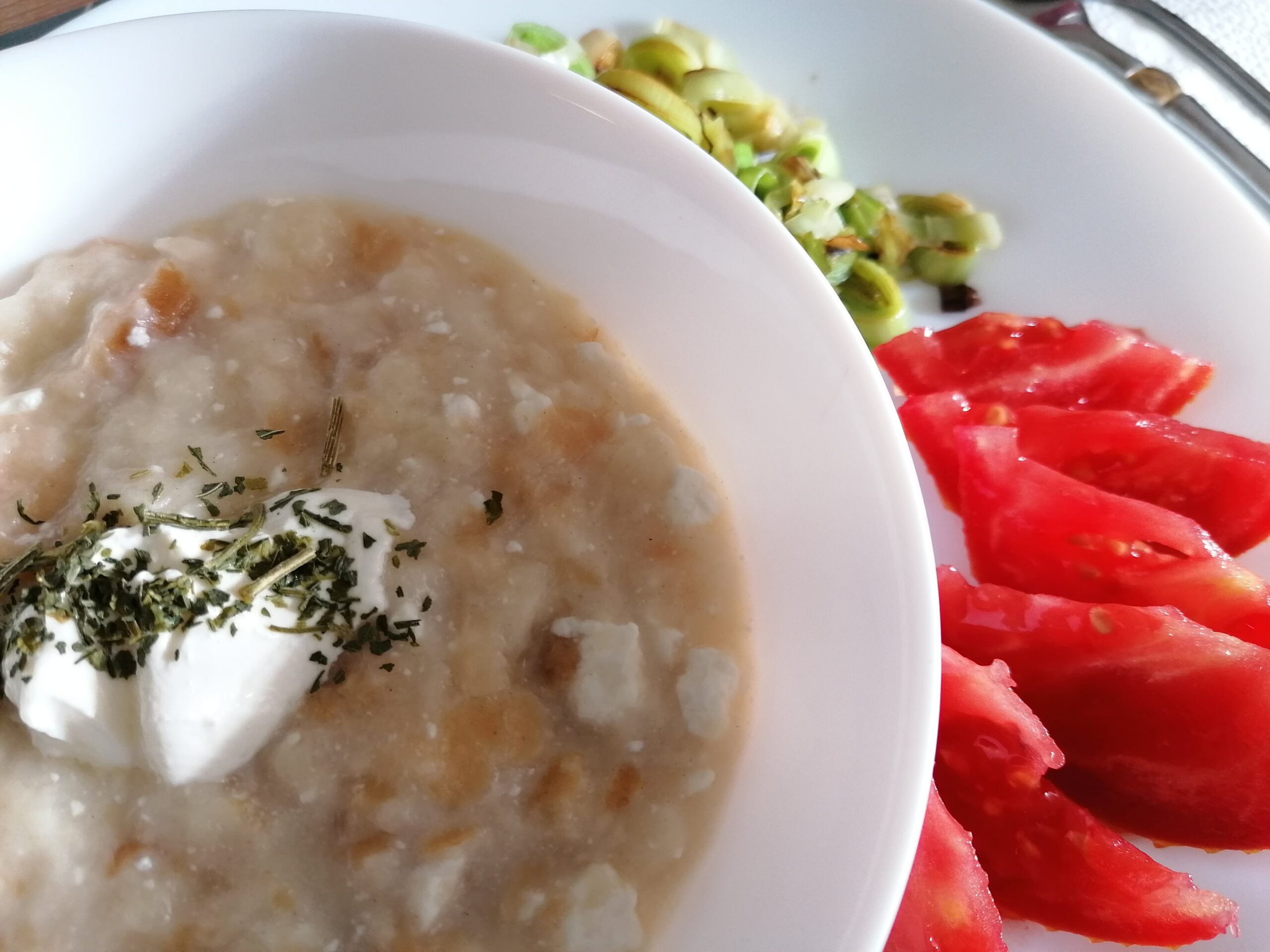 Na slici je primer serviranja sa sušenim listom celera, i paradajzom i proprženim prazilukom pored. Možete ga dodati i unutra, kao i izrendati još sira preko ili staviti kašiku pavlake. Stvar je ukusa šta vam se dopada.